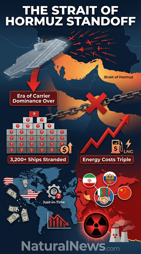 This is not speculation. In a Brighteon Broadcast News analysis, I pointed out that the U.S. Navy’s strength has diminished, making its carriers vulnerable targets. A scenario where Iran launches an all-out attack on U.S. naval vessels is not hard to imagine [2]. The geography of the Strait — a narrow, defensible channel — makes it a perfect kill zone for asymmetric warfare. Iran’s integration of China’s BeiDou navigation system, ditching vulnerable GPS, signals a deeper technological decoupling from Western systems and an alliance with rival powers [3]. The carrier group is not a deterrent; it is a target.
